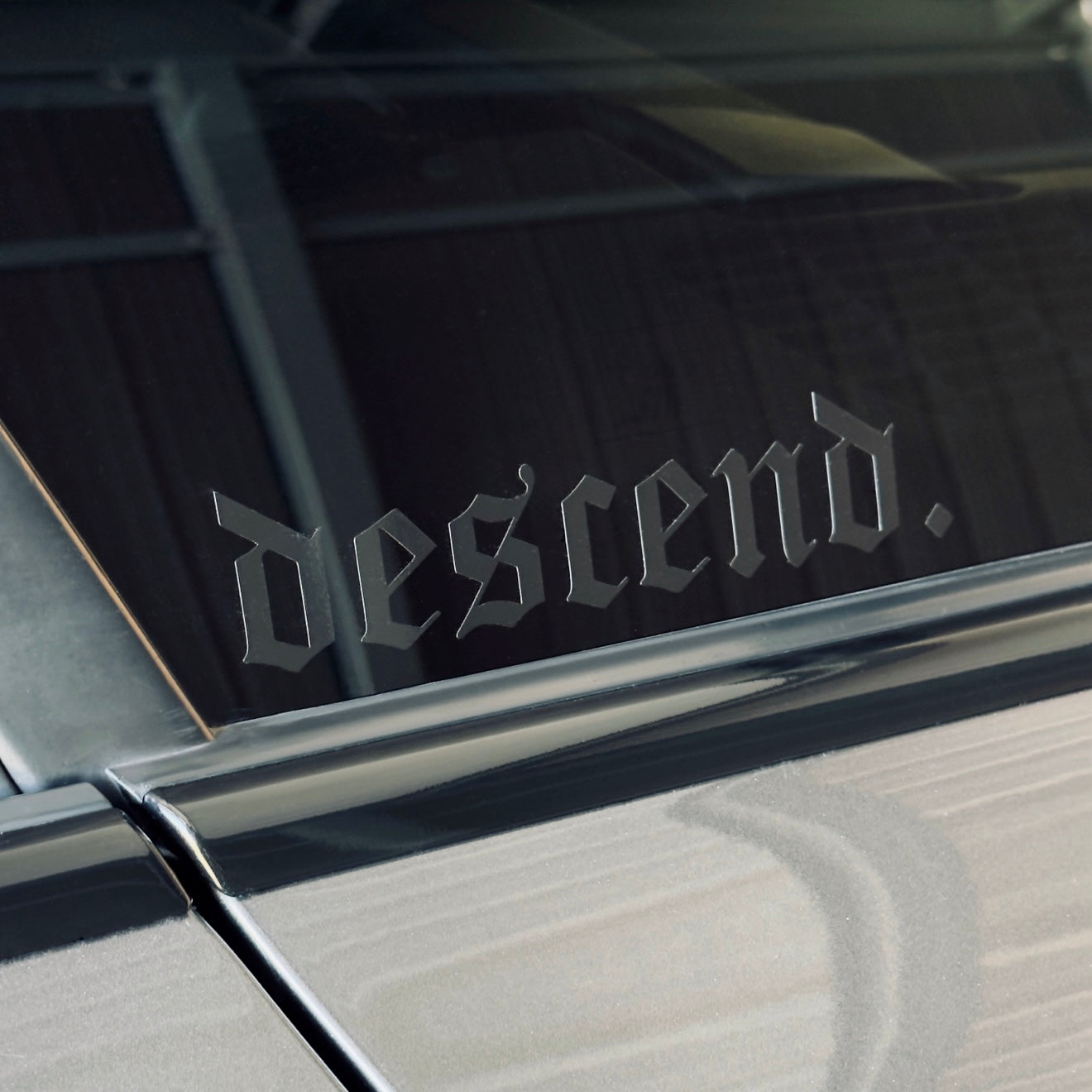 Ať už decentně na laku nebo jako poutač na zadním skle – descend samolepky vystihnou tvůj postoj přesně. Klasický nápis v retro stylu, volitelně jako jednotlivý motiv nebo zrcadlově – pro dvojnásobný efekt.